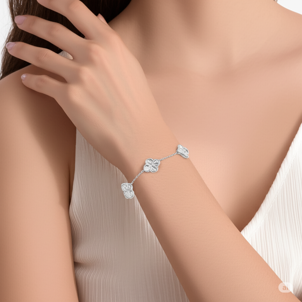 This everyday Clover bracelet is handcrafted in Sterling Silver.