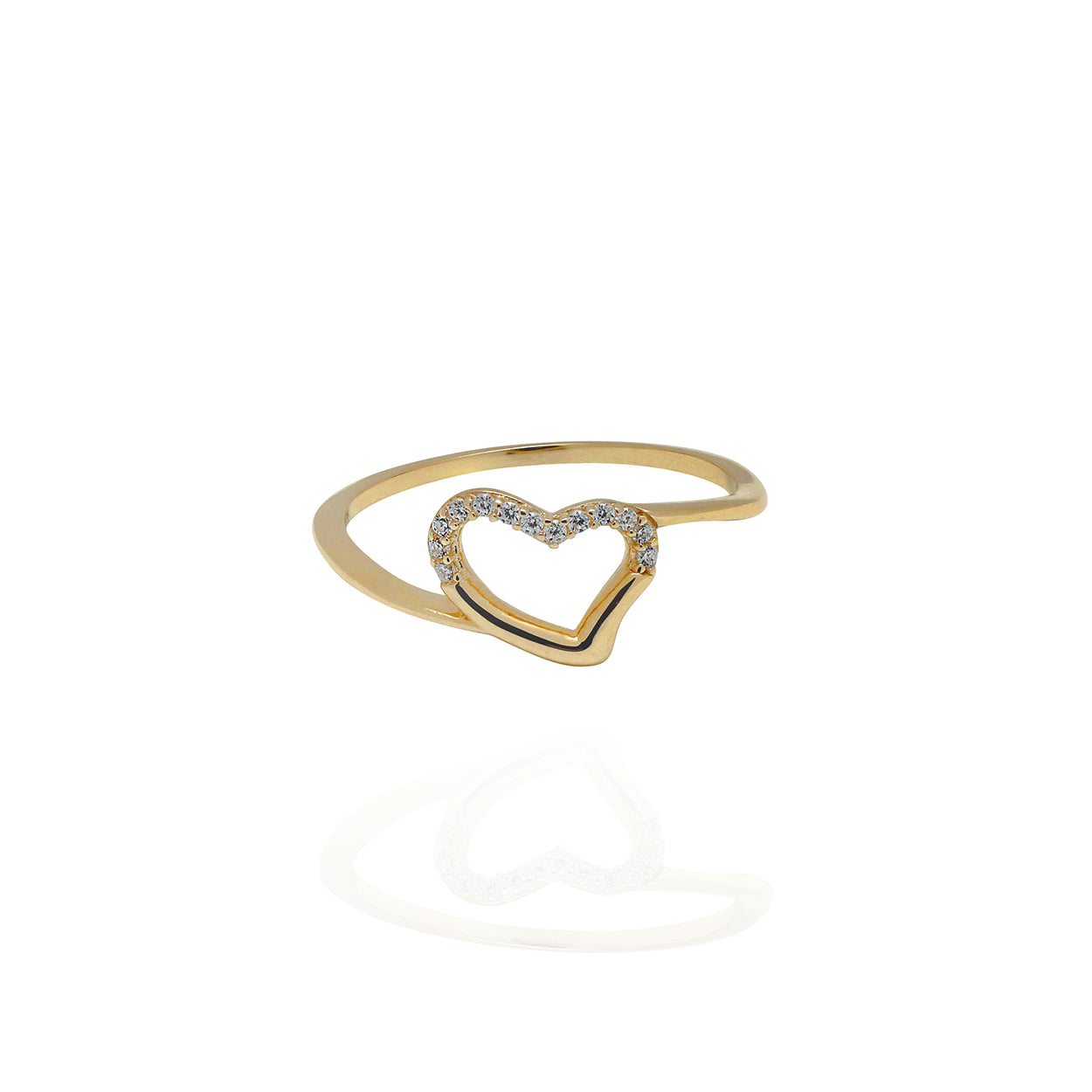 A simple way to express the words I Love You, a 10KT Solid Gold ring with a cutout of a heart encrusted with Cubic Zirconia. A comfortable and secure fit, this stunning piece that speaks beauty is difficult ever to take off.