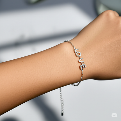 This everyday LOVE bracelet is set with Cubic Zirconia and handcrafted in Sterling Silver.